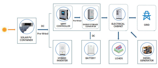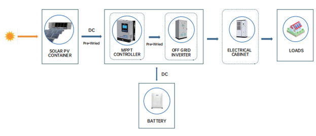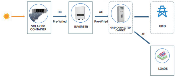 Current directus a modulo solaris generatus in alternam venam convertitur ab inverso, quod tunc oneri praebetur et cum craticula coniungitur. Hoc modo, dum onus domesticum convenit, excessus electricitatis in craticula quoque vendi potest.